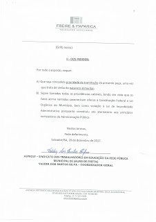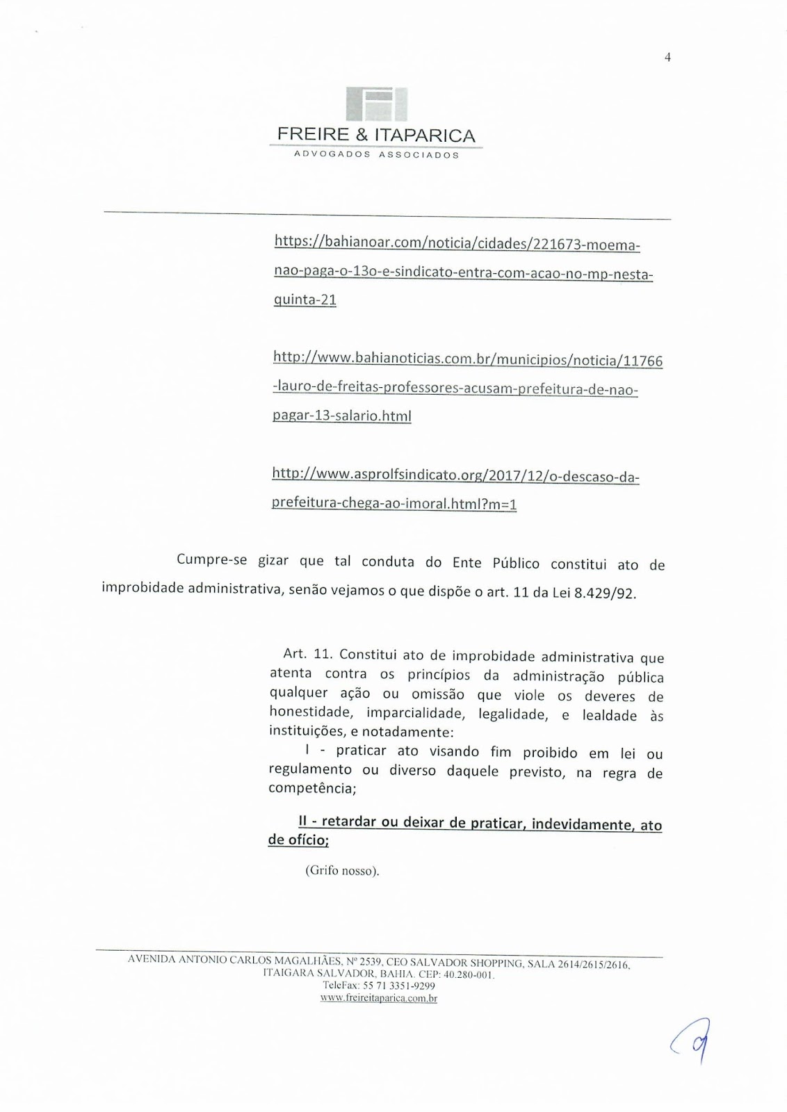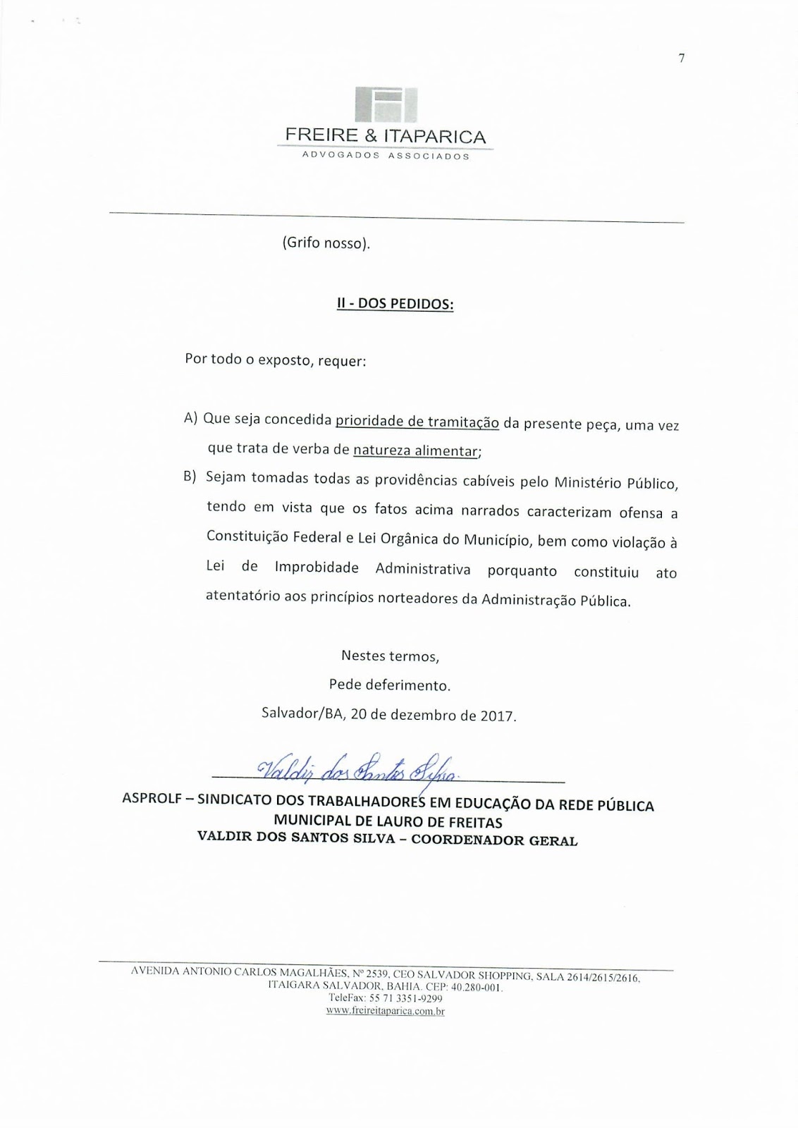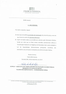 A ASPROLF protocolou na tarde de hoje (21), ação no TCM, MPE e MPF contra a prefeitura de Lauro de Freitas, pelo não pagamento da segunda parcela do 13º dos trabalhadores em educação.