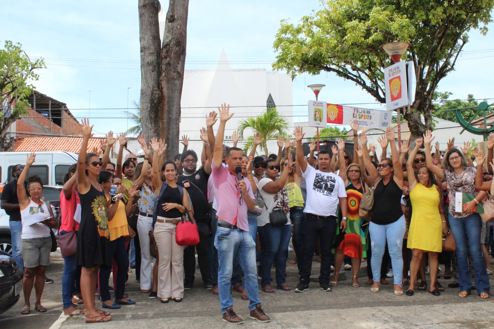 O ASPROLF realizou na manhã de hoje (15), na Praça da Matriz em frente à prefeitura de Lauro de Freitas, uma assembleia geral extraordinária para debater a imposição da Secretaria Municipal de Educação – SEMED, em implantar de forma a nova Matriz Curricular nas escolas da rede municipal de ensino.
