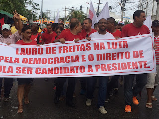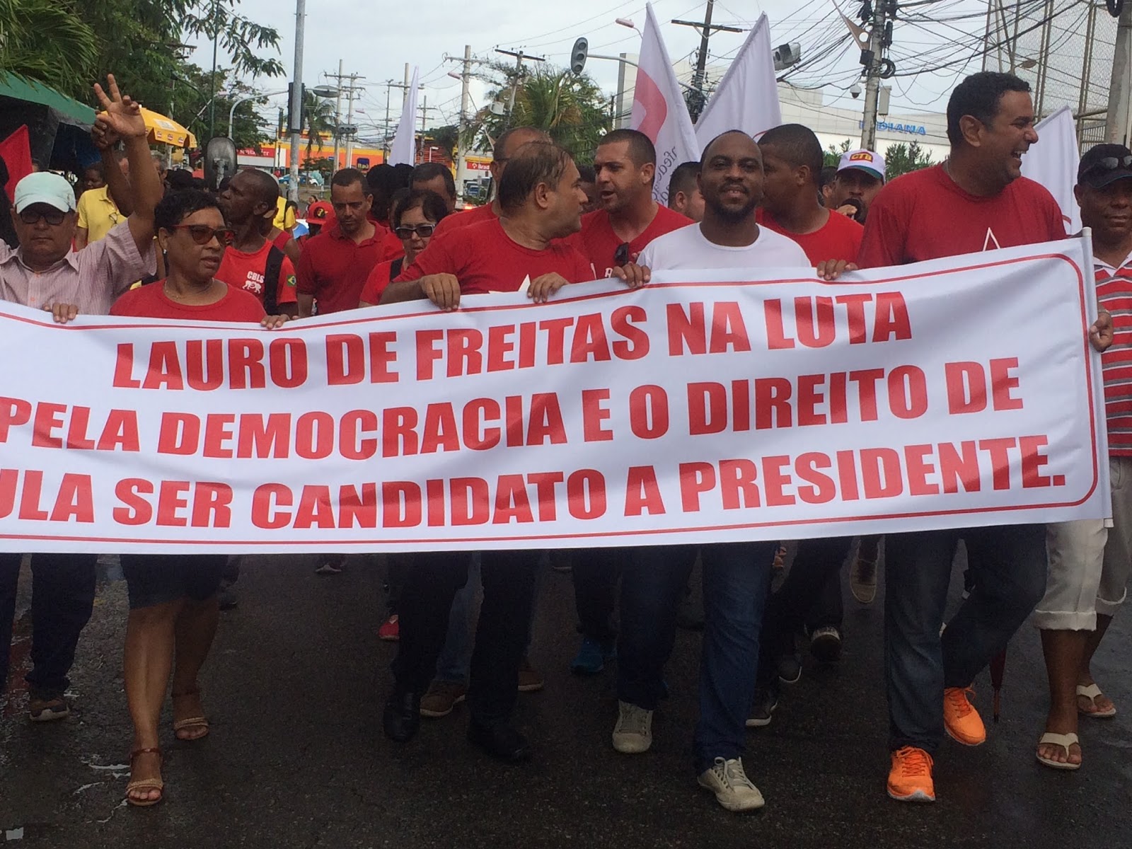 Com carro de som e faixas com a frase ‘Lauro de Freitas na luta pela Democracia e o Direito de Lula ser Candidato à Presidente, os trabalhadores fizeram panfletagem nas ruas e avenidas do Centro de Lauro de Freitas.