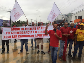 Mais uma vez as representações sindicais de Lauro de Freitas (Região Metropolitana de Salvador), unificaram forças em defesa da democracia. A mobilização começou às 4h30, na Estrada do Coco onde os trabalhadores ocuparam os dois sentidos da via e mais tarde seguiram em caminhada para a Câmara Municipal da cidade para acompanhar transmissão do julgamento do ex-presidente Luiz Inácio Lula da Silva.