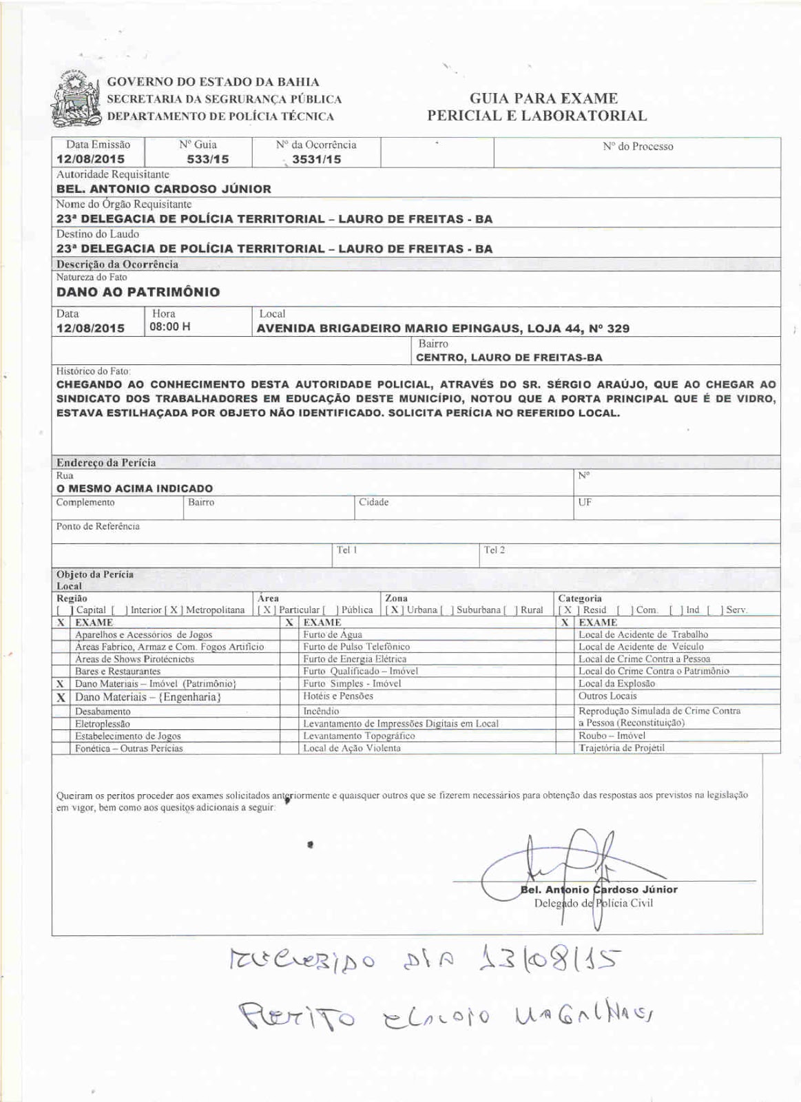 A perícia policial já esteve no ASPROLF para apurar o ocorrido. O ASPROLF Sindicato está situado na Avenida Brigadeiro Mário Epinghaus, Top Center, centro de Lauro de Freitas.