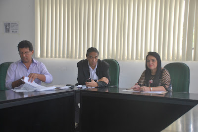 Chefe de gabinete Sr. Leto Lopes, o secretário de educação Sr. Paulo Gabriel Nacif, e a Sra. Moema Gramacho prefeita.