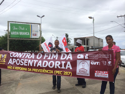 O ato desta quarta-feira que ocorreu nos bairros de Areia Branca e Capiarara foi uma oportunidade para os moradores do bairro se informarem mais sobre a Reforma da Previdência. Assim como em Itinga, Portão é Vida Nova, a comunidade de Areia Branca e Capiarara, contou com panfletagem e um aulão, que alertou sobre os riscos que essa proposta nefasta do Governo Federal representa para os trabalhadores das mais distintas classes.